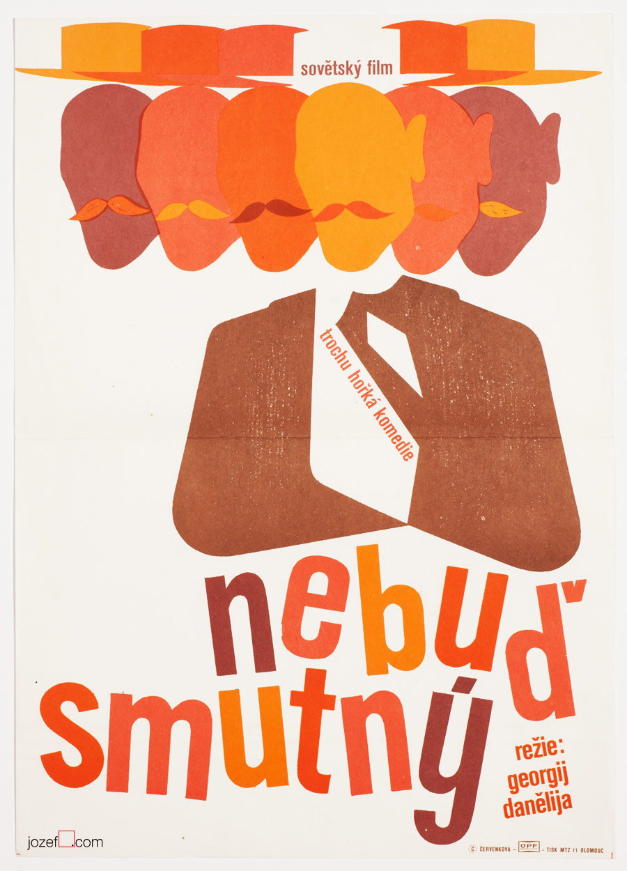 Beautifully designed vintage movie poster for a Russian comedy by Červenková.