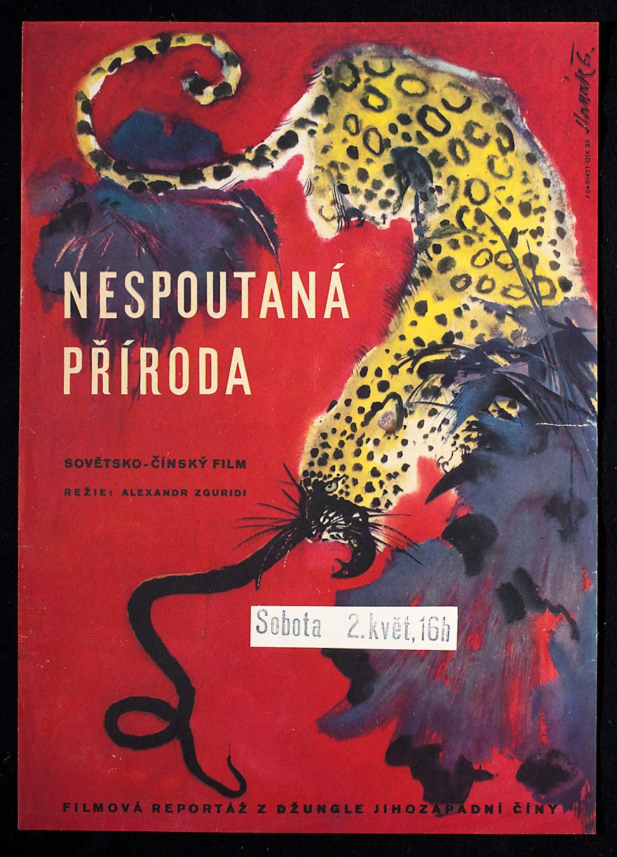 Movie poster designed for 50’s Soviet documentary with wonderful illustration by Czech artist Mirko Hanák..
