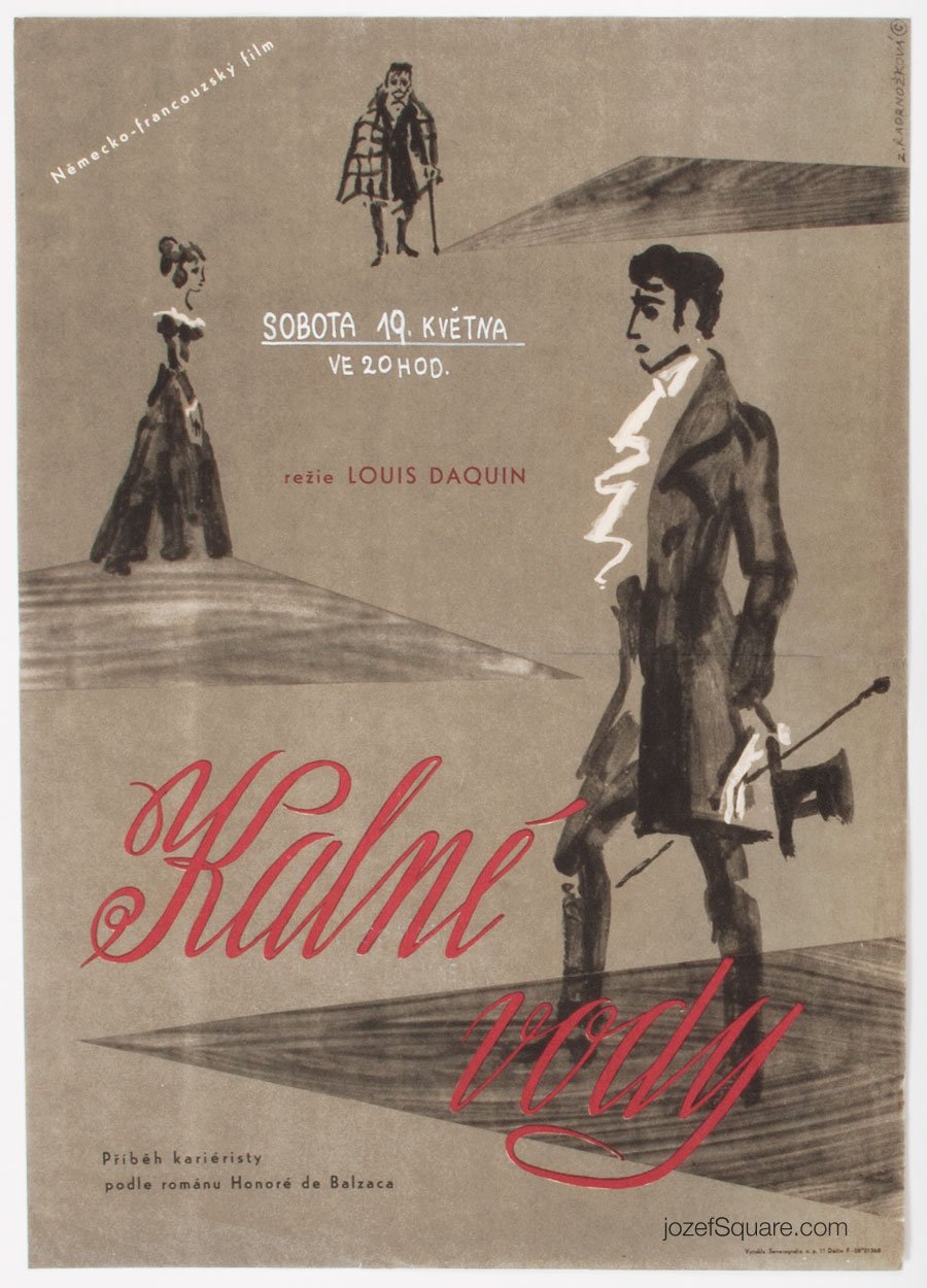 Movie poster designed for Louis Daquin’s historical drama with fantastic illustration by Czech costume, stage and graphic designer Zdenka Kadrnožková.