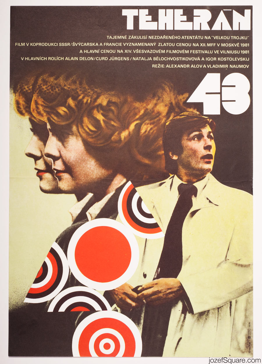 Movie poster for Soviet spy drama starring Alain Delon with excellent artwork by Czech award winning graphic designer and fine artist Karel Vaca.